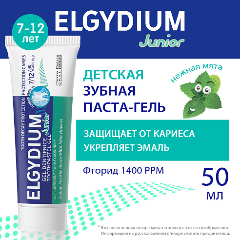 Детская зубная паста-гель ЭЛЬГИДИУМ Защита от кариеса джуниор с мягким вкусом мяты