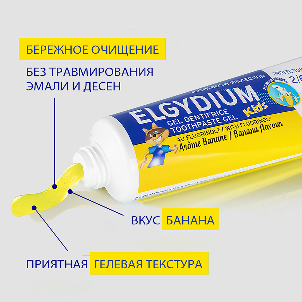 Зубная паста-гель для детей от 2 до 6 лет ELGYDIUM TOOTH DECAY PROTECTION KIDS BANANA FLAVOUR