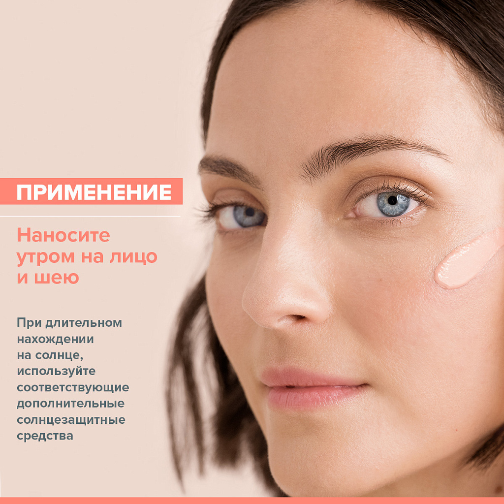 Наносите утром на кожу лица и шеи как самостоятельное средство или после сыворотки.