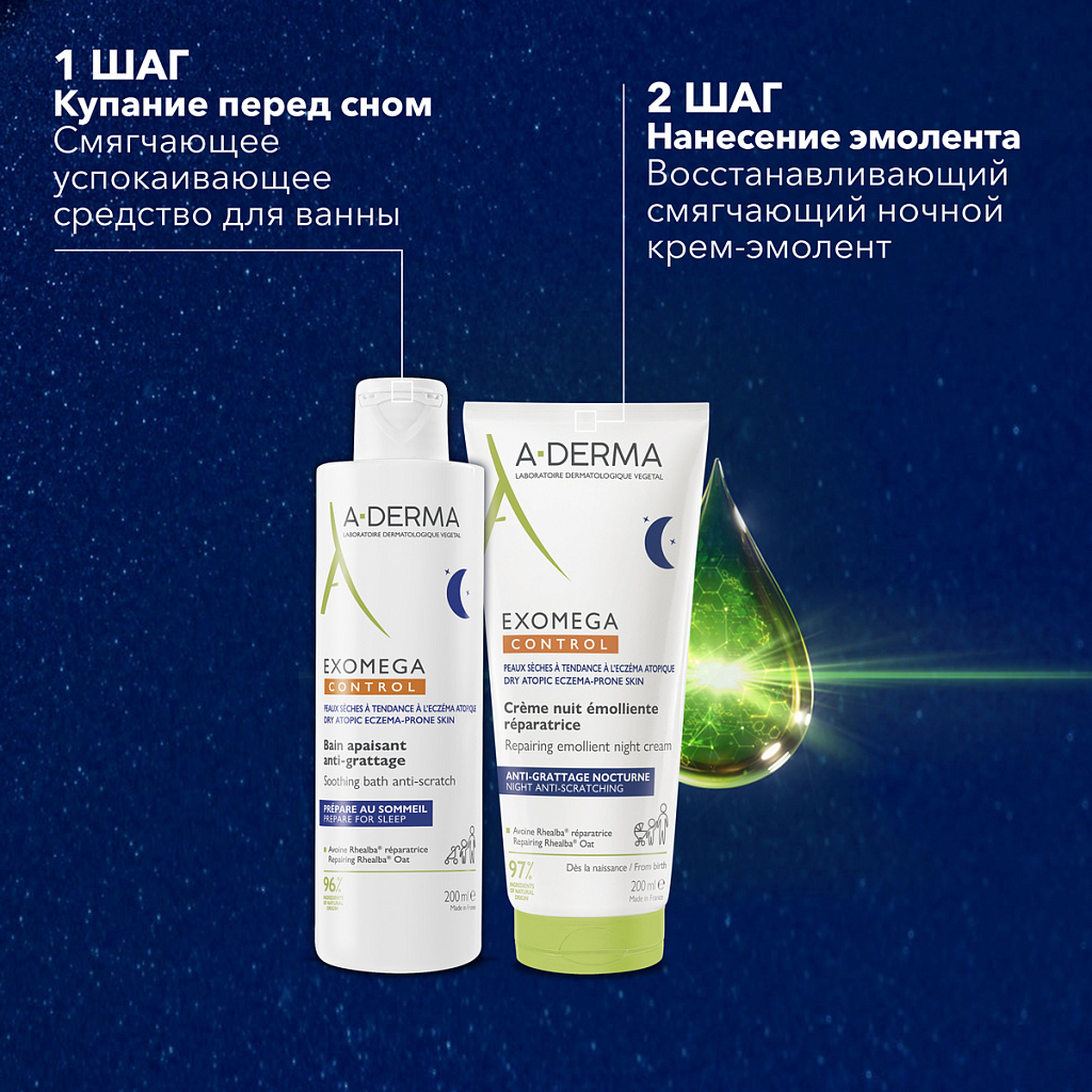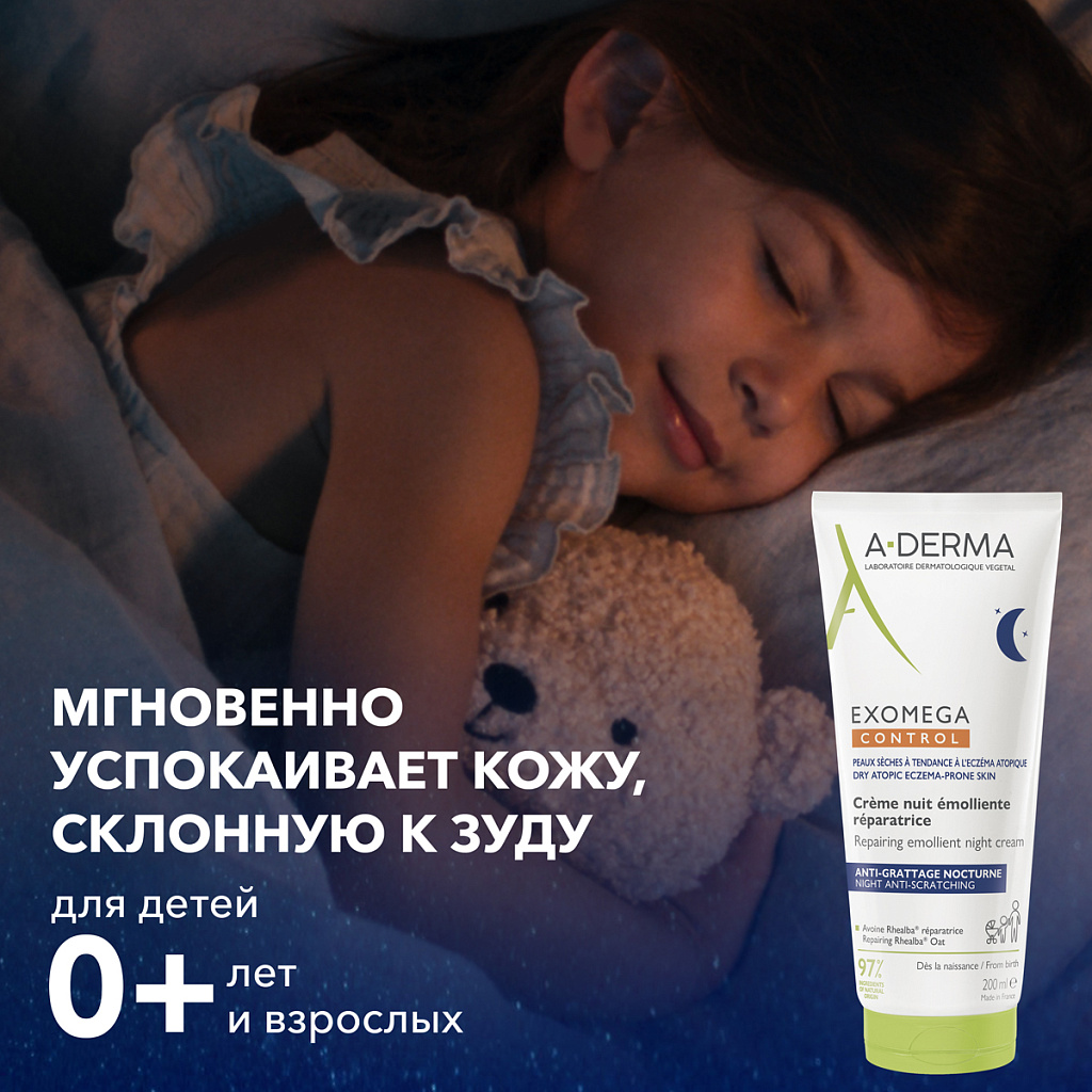 EXOMEGA CONTROL восстанавливающий смягчающий ночной крем-эмолент для лица и тела мгновенно успокаивает зуд, вызванный сухостью кожи и способствует восстановлению защитного барьера кожи. Обеспечивает спокойный сон при ежедневном вечернем использовании.