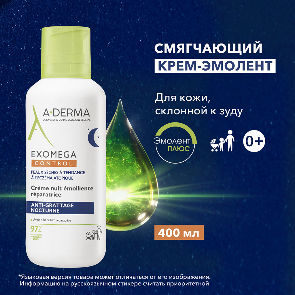 A-DERMA EXOMEGA CONTROL Восстанавливающий смягчающий ночной крем-эмолент