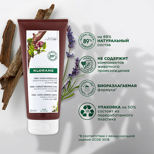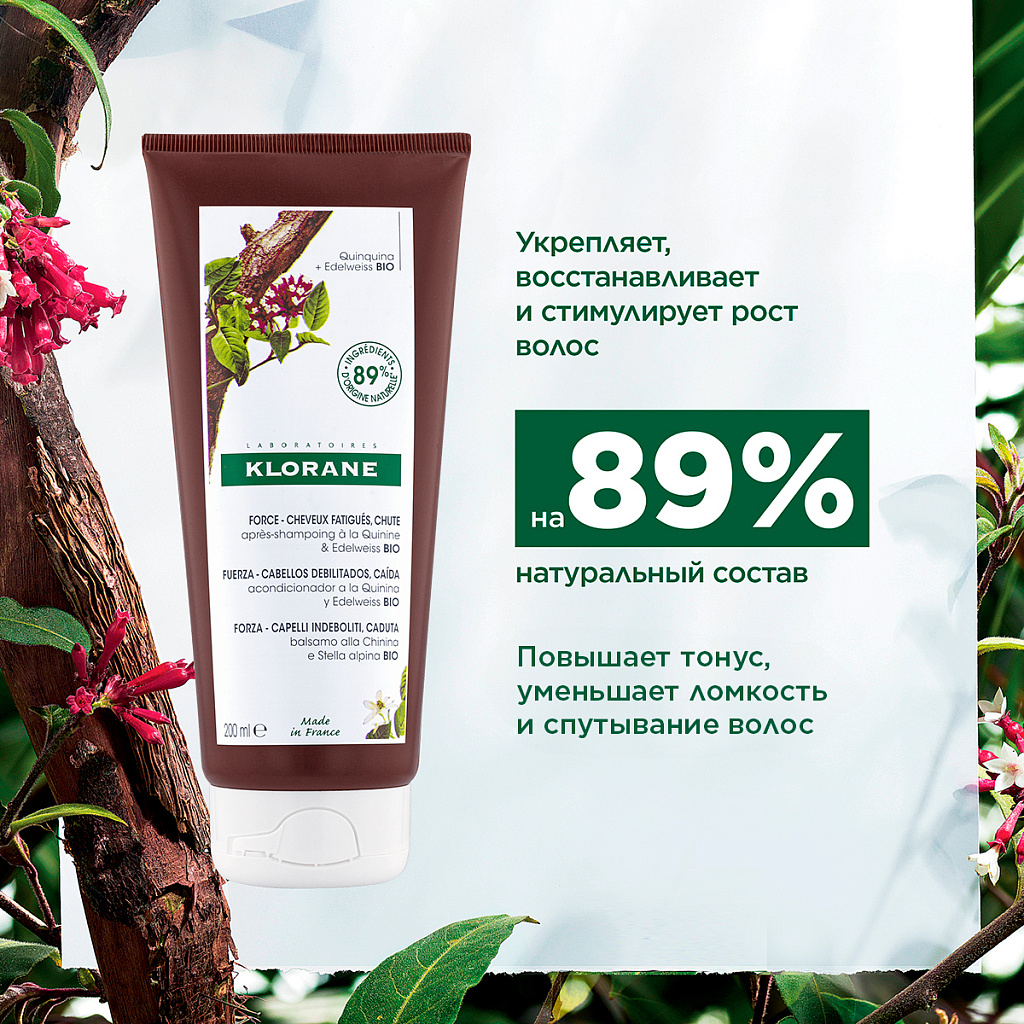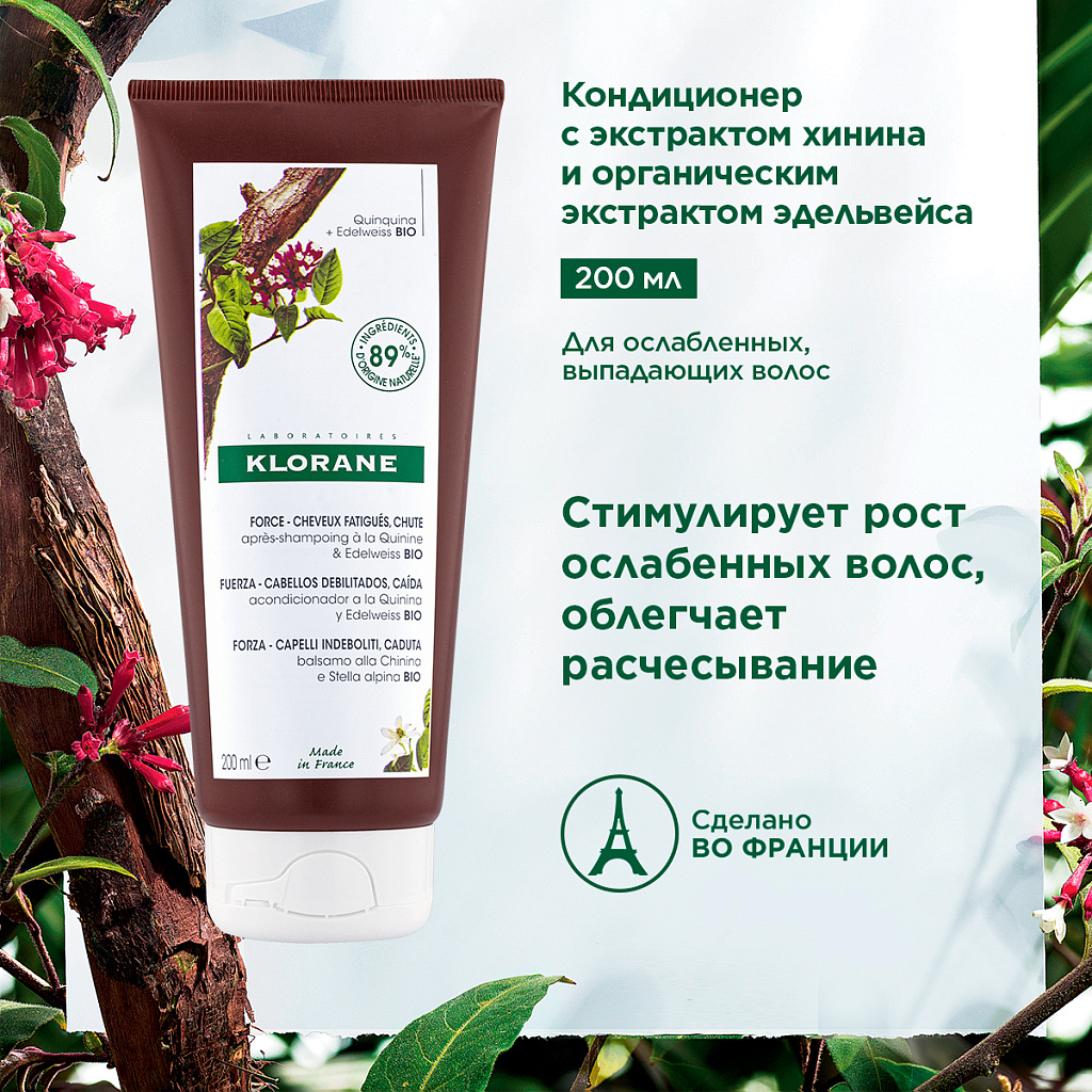Кондиционер Klorane с экстрактом хинина предназначен для волос, утративших жизненную силу.